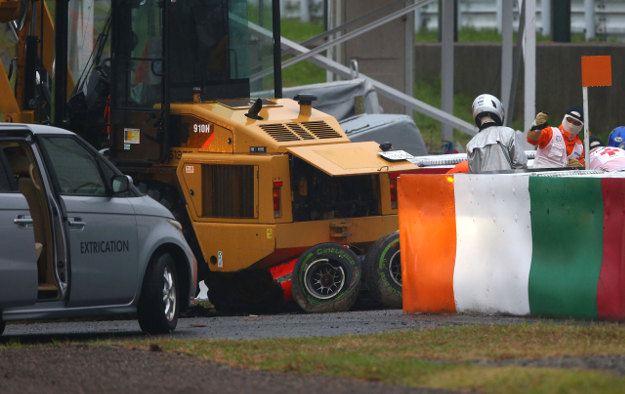 Бјанки се заби со голема брзина во возилото што личи на трактор, а служи за кревање болиди што заглавиле на патеката. Само еден круг пред стравичниот удар во него на 25-годишниот пилот, тракторот пристигна за да го крене болидот на Андреа Сутил.