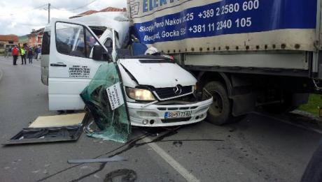 – Мини автобусот со предниот дел удрил во левата страна во моторно возило марка „Ивеко“ со скопски регистарски таблици. Осум патници се префрлени во Општата болница во Струга и кај нив се констатирани лесни телесни повреди. Двајца се пренесени во болницата „Св.Еразмо“ во Охрид и за нив се уште се чека лекарскиот наод за карактерот на здобиените повреди, информира Димоски.