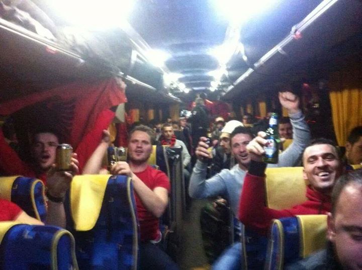 Група навивачи од Косово, предводена од поранешниот припадник на УЧК, Алберт Кастрати, тргна кон Белград за да ја поддржи Албанија на вечерашниот натпревар со Србија.