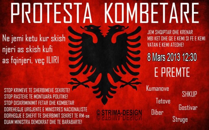 Иако и политичките партии и ИВЗ се оградија од протестите, на плакатот кој го подготвил и го дистрибуира лицето Џ.И., кој по потекло е од Липково, а живее во главниот град на Белгија, Брисел, се повикуваат сите Албанци на национален протест на 8 март. На протестот треба да се побара стоп за монтирани судски случаи (се мисли на судењето за Смиљковско езеро) и запирање на наводната национална и верска дискриминација. Авторот на плакатот за себе вели дека е веб-дизајнер и архитект и дека е дел од хакерска група што напаѓала македонски веб-портали.