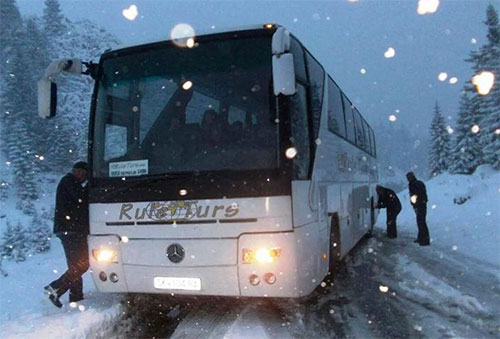 -Автобусот на „Руле Турс“ во кој имаше околу 30 патници, на пат кон Подгорица беше запрен пред граничниот премин, кај месноста „Кула“ во Косово, неколку минути по полноќ, а полицијата ни објасни дека патот е блокиран поради превртен камион и блокадата ќе трае до 10 часот утрово. Автобусот се врати назад, до еден ресторан во кој останавме повеќе од 5 часа. Патниците бараа да се оди преку Албанија, но возачите се правдаа дека им треба посебна дозвола за таа рута. Нешто пред 6 часот утрово, ни рекоа дека ќе се обидеме да одиме по друг алтернативен пат. Се движевме по селски патишта, се додека автобусот не заглави на снегот кој напаѓа речиси десетина сантиметри. Едвај ја поминавме косовската и црногорската страна која е покриена со снег. Патувањето од планираните 8 часа, траеше 15“ – раскажува Саше Димовски, еден од патниците.