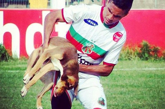 Бразилскиот фудбалер Едуардо Мандаи имаше необична авантура на меч од регионалните натпреварувања, а среќа му донесе куче што влета на теренот.