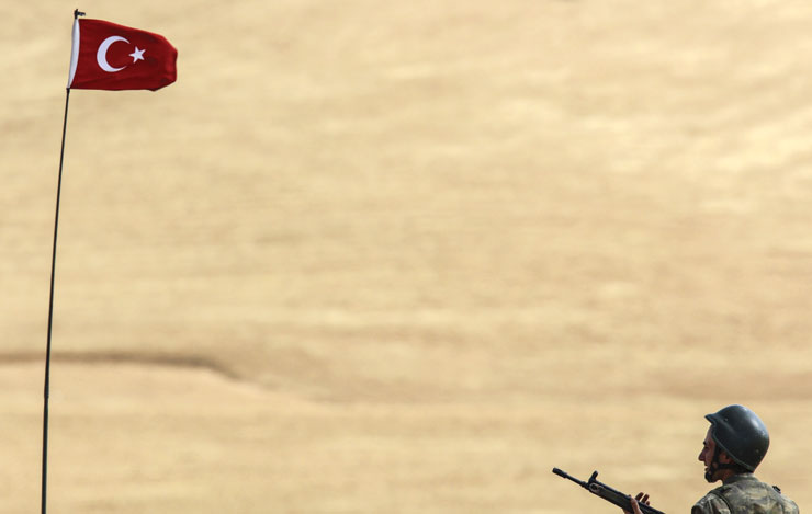Турција ја поддржува борбата против ИСИС и други терористички закани. На 2 октомври турскиот парламентот усвои одлука за овластување на Владата за употреба на воена сила и за соработка со странски сили против терористичките организации во Сирија и во Ирак. Но, критикувањето на Турција поради одбивање да испрати копнени трупи кога и сите други земји одбиваат го направат тоа ѝ пркоси на секоја логика.