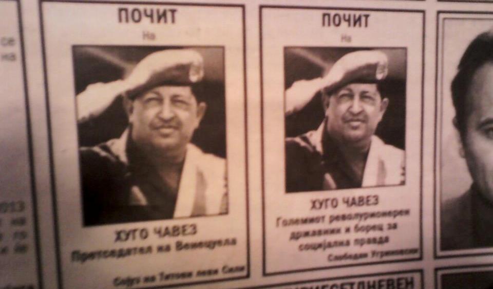 Последен поздрав до Чавез испраќаат партијата Титови леви сили и претседателот на оваа партија Слободан Угриновски.