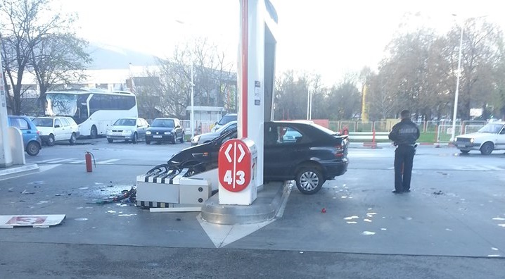Утрово на бензиската пумпа „Лукоил“ во Автокоманда, скопјанец со своето возило се забил во една од пумпите за точење гориво. Според очевидците, тој со огромна брзина влетал во бензиската пумпа.