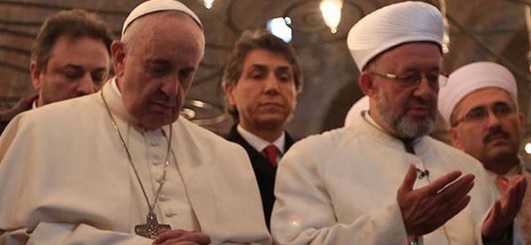 По примерот на својот претходник, папата Бенедикт 16., кој ја посети Турција во 2006 година, Франциско се помоли покрај големиот истанбулски муфтија Рахми Јарам, кој ги сврте дланките во правец на небото за време на муслиманската молитва во Сината џамија, изградена во 17. век.