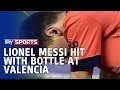 – Фудбалскиот клуб Валенсија жали и го осудува настанот за време на натпреварот со Барса, кога мало шише со вода е фрлена од трибината на противничкиот играч Меси. Клубот настојува да ја лоцира личноста и на истата ќе и биде забранет влезот на „Местаља“, велат од славниот шпански клуб.