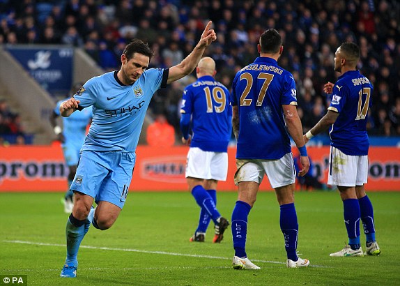 Френк Лампард го држи Манчестер сити во игра за титулата во Англија, а денеска искусниот играч што дојде од Челси со гол му донесе победа на својот нов тим. Сити славеше со 1-0 на гостувањето кај Лестер и го задржа чекорот со лидерот Челси, кој лесно го победи Хал со 2-0.