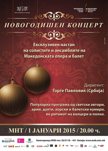 Македонската опера и балет на 1 јануари 2015 година во Македонскиот народен театар, во 20 часот, ќе го одржи својот Новогодишен концерт. На програмата ќе бидат: