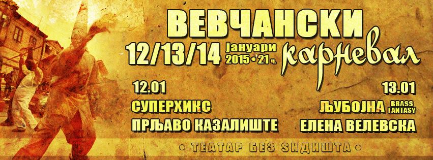 На 12. јануари во рамки на оваа програма во Вевчани со концерт ќе гостува „СУПЕРХИКС“, нашата најактивна банда инструментале која е позната по енергичните и еуфорични настапи и е веќе докажан бенд кој гарантира секојпат ново концертно лудило. Покрај нив, задоволство ни е на претстојното издание на Вевчански карневал да ги пречекаме и регионалните музички ѕвезди, хрватскиот легендарен бенд „ПРЉАВО КАЗАЛИШТЕ“ кои неодамна во анкетата на хрватската телевизија „РТЛ“, се најдоа и во листата со најдобри хрватски песни на сите времиња . Овој бенд зад себе има огромна фан база низ целиот Балкан и може да се пофали со дури 18 студиски изданије, а во Вевчани пред карневалската публика ќе ги претстави бројните безвременски хитови и најпознати композиции од нивниот опус.