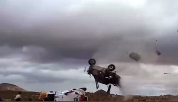 На релито Дакар во Боливија се случи катастрофална двојна несреќа, но за среќа немаше повредени.