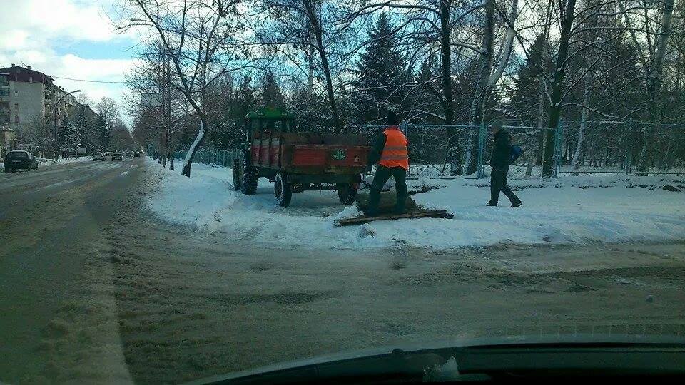 Со трактор и импровизиран дрвен чистач се решаваат проблемите на битолчани со снегот. Фотографиите се сликани на една од поголемите улици во центарот, на улицата „Партизанска“.