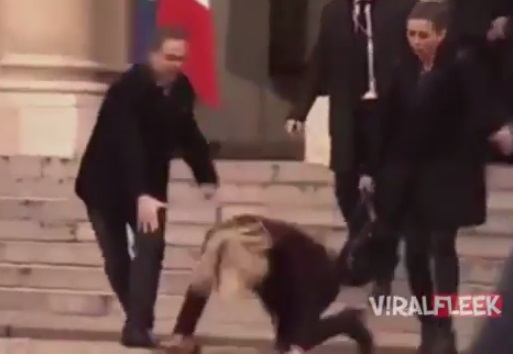 Данската премиерка Хеле Торнинг Шмит додека излегувала од Елисејската палата на скалите го искривила зглобот и паднала после Маршот на солидарноста во Париз.