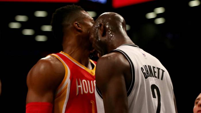 Гарнет направи прекршок над центарот на Хјустон, кој само го оттурна од себе, а тоа беше причина најпргавиот кошаркар во НБА-лигата со глава во брадата да му врати на Хауард.