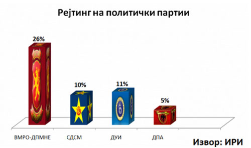 Според најновата анкета на ИРИ објавена пред неколку дена, граѓаните ценат дека ВМРО-ДПМНЕ е најактивна парија помеѓу народот. На прашањето која партија е најактивна во населените места резултатите се следни: ВМРО-ДПМНЕ 52%, СДСМ 7%, ДУИ 16% и ДПА 5%.