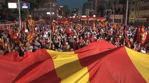 Под мотото „Македонија силна!“ пред Собранието на Република Македонија вечерва почна големиот народен собир на владејачката ВМРО ДПМНЕ и партиите од коалицијата „За подобра Македонија“.