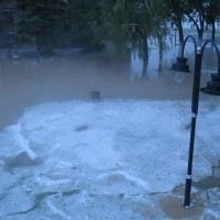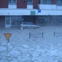 Во Голубац, Србија денеска попладне паднала голема количина град кој ги кршел прозорците на куќите и дуќаните.