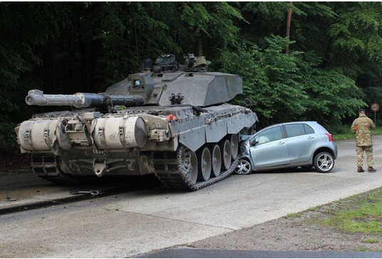 Осумнаесетгодишниот Германец, кој вчера попладне возел возило марка „тојота“, не успеал да го избегне тенкот од 68 тони, управуван од британски војник од силите на НАТО, стационирани во Германија. Потоа дошло до несреќата на патот, кој меѓу локалното население е познат како „тенковска заобиколница“.