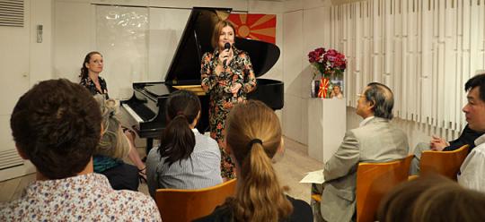 Потевска-Попивода изведе македонска изворна музика преточена во класични звуци за пијано од композиторот Димитрије Бужаровски. Првиот резидентен Амбасадор на Република Македонија во Јапонија Андријана Цветковиќ ја покани публиката да ја посети Македонија и подобро да се запознае со македонската култура, музика и традиција. Присутните имаа можност да дегустираат македонско вино.