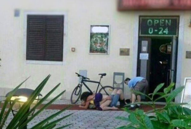 Двојка во неделата наутро уживаше во секс-игра пред ноќен клуб во центарот на градот, а потоа и трето лице им се придружува во забавата.