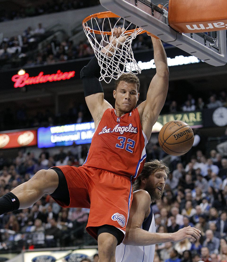 Блејк Грифин од Лос Анџелес клиперс игра одлично и во нападот и во одбраната, а повторно ги презентираше квалитетите и против Далас иако неговиот тим загуби со 102-109 во продолженија. Крилото од Лос Анџелес е мошне атрактивен забивач и опасен блокер. Во скромната ноќешна програма од само три меча, Грифин заслужи двапати да биде во ТОП-5 со најатрактивни моменти. Убава беше и акцијата на Далас со поени за Дирк Новицки и забивањето на Крис Мидлтон и тројката на Џеј Ар Смит.