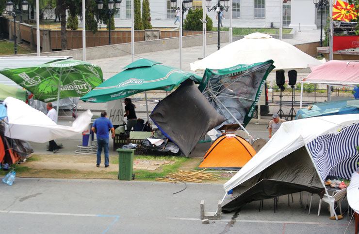 И до­де­ка на За­ев те не му се бр­за те му се бр­за, вре­ме­то те­че, а гра­ѓа­ни­те се сѐ по­кра­тки со нер­ви­те. Пр­венс­тве­но, тие што За­ев ги др­жи на сенд­ви­чи во ша­то­ри­те пред Вла­да, па пр­во се прес­ме­ту­ваа ме­ѓу се­бе, а по­тоа се прес­ме­ту­ваа и со слу­чај­ни ми­ну­ва­чи.