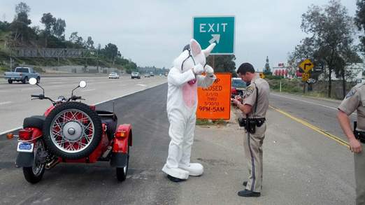 Велигденско зајаче било сопрено од сообраќајна патрола во Калифорнија затоа што не носело заштитна кацига на моторциклот.