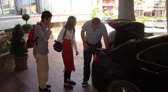 Дао утрово (25-ти август) пристигна на скопскиот аеродром „Александар Велики“, каде беше пречекан од раководството на Струшките вечери на поезијата, директорот Мите Стефоски и претседателот на Управниот одбор Славе Ѓорго Димоски. Освен добитникот на „Златниот венец“ во Струга пристигна и Хасан Зактан од Палестина и Јусеф Комуњака од САД.