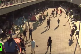 Тој додал дека дошло до судири меѓу бегалците и десничарите, при што биле фрлани шишиња, а повикана била и интервентната полиција. Браун наведува дека скинерите очигледно дошле пред станицата Келети, само за да ги провоцираат бегалците.