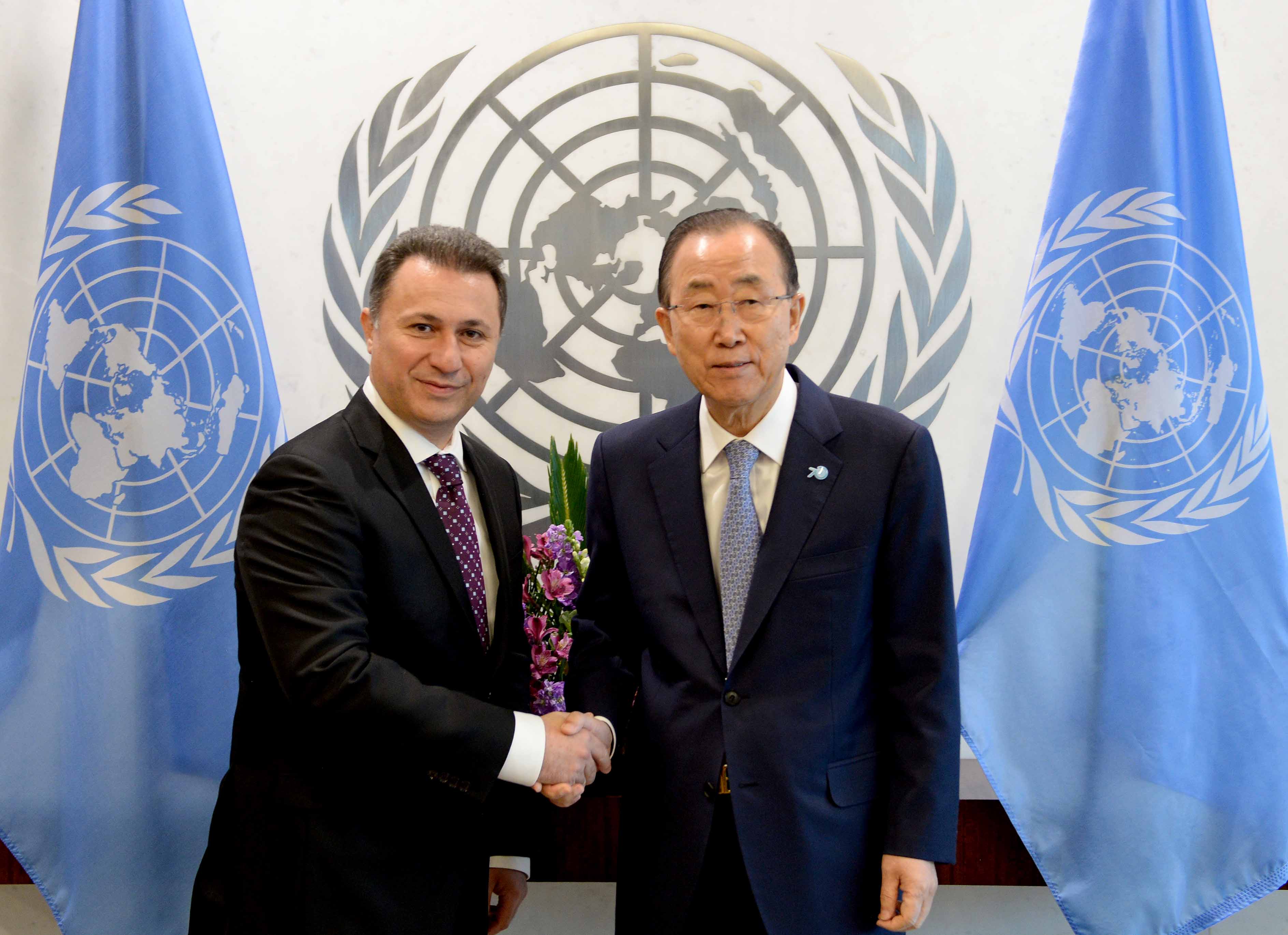 Генералниот секретар на ОН, Бан Ки Мум изрази задоволство од придонесот на Македонија во реализацијата на целите на Обединетите нации, потенцирал дека активно ги следи сите процеси и активности во рамките на разговорите за решавање на спорот меѓу Македонија и Грција и дека редовно е информиран од медијаторот Нимиц за разговорите.