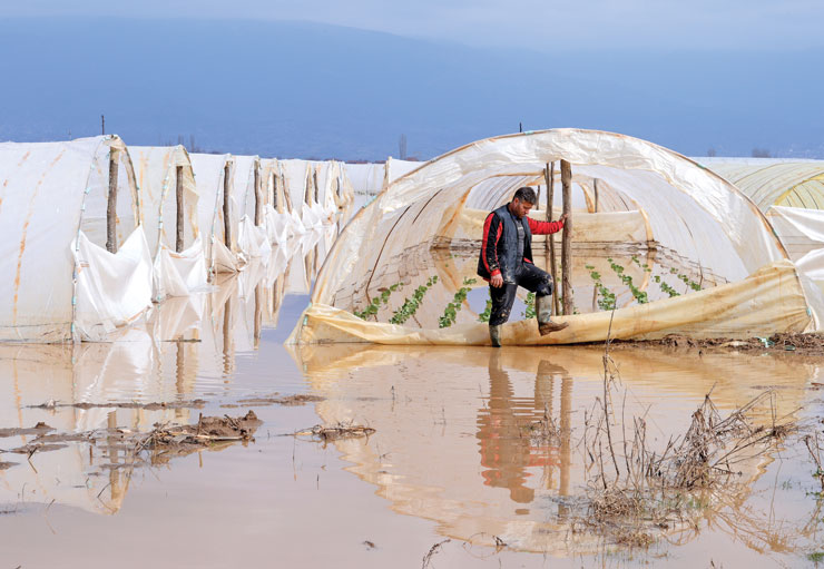Нивите претворени во езера, измиена почва, несобрани есенски култури, поплавени куќи, уништени домаќинства. Ова е сликата која деновиве може да се види во повеќе региони во земјава, направена од поплавите предизвикани од обилните врнежи од дожд. Колкави се точно штетите допрва ќе се проценува, но првичните согледувања говорат дека тие се големи и дека земјоделството е ставено во многу незавидна ситуација, па во услови кога сѐ уште не се доисплатени претходните штети, веќе се создаваат нови. Сегашните поплави претставуваат своевидна реприза на пролетните поплави, кога, исто така, штетите беа огромни, како за земјоделците, така и за граѓаните кои цехот на поплавите го платија преку поскапи земјоделски производи. Сѐ на сѐ, климатските промени го прават своето, ставајќи го аграрот во позиција да се бори со последиците од нив, без здив и можности да вложува во предизвиците за побогато и поквалитетно производство. Единствена помош во вакви услови доаѓа од владата, која несебично му помага на овој сектор преку покривање на штетите од природните непогоди, но природата очигледно е побрза и од оваа помош. Најлошото во ваква ситуација е што метеоролозите најавуваат нови врнежи, па земјоделците се исплашени од влошување на состојбата на терен.