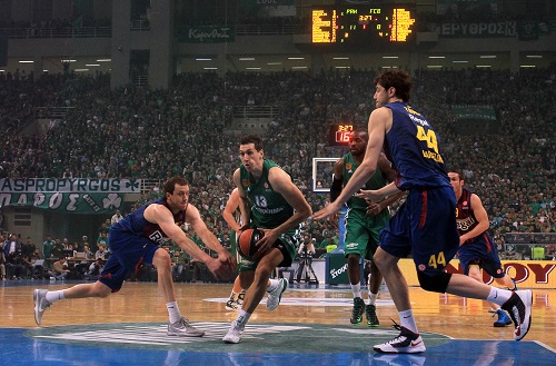 За разлика од Реал, Барселона се наоѓа пред елиминација, бидејќи губи со 1-2 во полуфиналната серија до три победи против Панатинаикос. И повторно како на првите два меча во Барселона и сега во Атина беше незивесно до крајот. Победи Панатинаикос со 65-63, а сите три дуели завршија со тесен резултат. Првиот дуел по продолжение го добија каталонците со 72-70, а потоа Грците се реваншираа со драматична победа од 66-65. Тогаш Дијамантидис погоди тројка во финишот, за победа, а и вечерва беше клучот на успехот. Грчкиот репрезентативец повторно даде тројка во завршницата за предност на домаќините од 64-63, а трагичар на мечот беше Анте Томиќ со две промашени слободни фрлања, за пораз на фаворитот. Четвртиот дуел се игра задутре, повторно во Атина, а ако слави Панатинаикос ќе биде полуфиналист, по истото сценарио од пред две сезони, кога Барселона поведе со 1-0 во серијата и потоа ги загуби следните три натпревари.