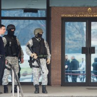 При влезот во Врховниот суд каде што се одржува судењето, беше извршена темелна проверка на сите што треба да присуствуваат на судењето.