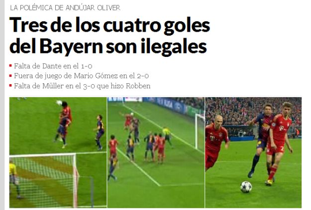 Шпанскиот спортски магазин Марка пишува дека три од четирите гола на Баерн Минхен се последица на судиски пропусти.