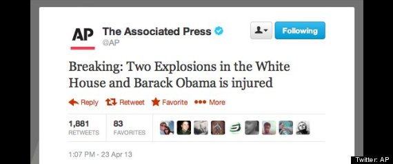 Хакерите вчера презедоа контрола врз профилот на агенцијата и објавија лажна вест за бомбашки напад на Белата куќа во кој наводно бил повреден Барак Обама. Веста го обиколи светот за миг, а предизвика и пад на индексот на њујоршката берза, но за кратко време се нормализирала работата.