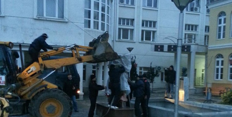 Немало инциденти додека српската Жандармерија со тешка механизација го отстранувала споменикот на ОВПМБ од плоштадот во Прешево.