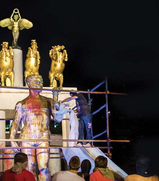 Срамно е тоа што оваа платеничка група, која наплатува милионски суми за антидржавно дејствување, си дозволува да се поистоветува со македонскиот народ и да се претставува како дел од него, а во исто време го навредува и понижува во секоја можна пригода. Уште победно е тоа што овие платеници себеси се сметаат за некакви херои кога се пресметуваат со спомениците и со објектите или кога скриени зад нивните профили на „Фејсбук“ се закануваат на секој неистомисленик и противник, а, од друга страна, се однесуваат како вистински кукавици кога ќе бидат предупредени дека ќе добијат со иста мерка ако не запрат со насилството врз институциите и со притисоците врз граѓаните. Да бидеме јасни, и по кој знае кој пат да повториме, законите важат за сите исто. Ако институциите го толерираат вандализмот на оваа платеничка банда, тогаш кој е тој што ќе смее да го казни народот поради неговата испровоцирана реакција? Прекумерната толеранција од институциите на системот и од граѓаните, пак, од друга страна, им овозможува на платениците само да си го засилат чувството на ексклузивност во примената на насилство.