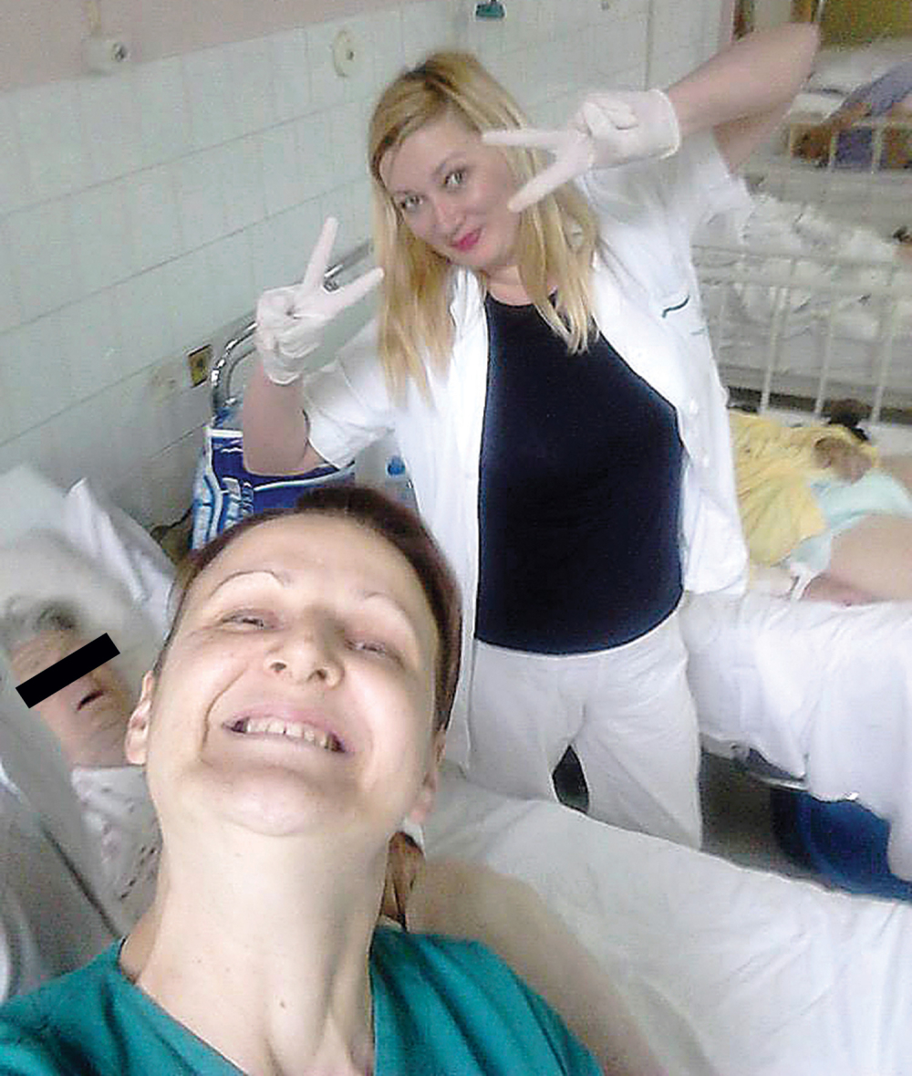 Две медицински сестри се сликаа насмеани во соба полна со пациенти на невролошкото одделение во сомборската болница. Фотографијата ја објавиле на „Фејсбук“.