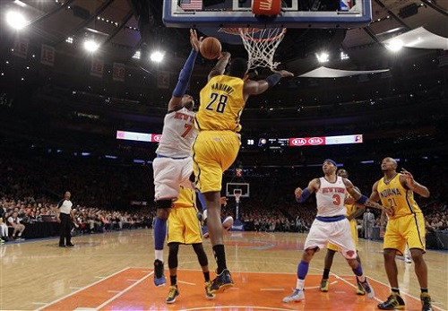 Во нова пресметка на големите ривали на Истокот од НБА, многу важна победа од 102-95, во „Медисон Сквер Гарден“ забележаа гостите од Индијана. Ди-џеј Огустин беше изненадувањето од клупата на Пејсерс со 16 поени, и 4 погодени тројки од 5 обиди. Индијана одигра извонредна одбрана, против најдобриот стрелец од регуларниот дел Кармело Ентони. Популарниот Мело постигна 27 поени, најмногу на натпреварот, но имаше очајни 28 посто реализација, со 10 погодени удари од 28 обиди. И вториот офанзивен адут на Њујорк, Џеј Ар Смит, се мачеше. И тој шутираше слабо со удар од поле 4/15, а го заврши мечот со 17 поени.