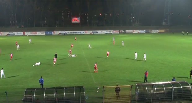 Фудбалерот од полскиот третолигаш Одра Ополе, Дамиан Завиеј, направи неверојатно брутален фаул без никаква потреба на средината на теренот. Фудбалерот за врска во полн трк го „собра“ противничкиот играч за што без размислување судијата му додели директен црвен картон.