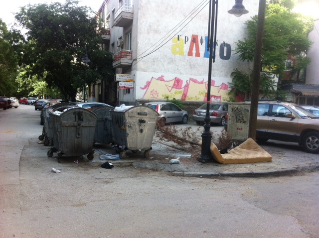 Ова е денешната слика на центарот на градот. Кој е виновен? „Комунална хигиена“ или Скопјани?! Се си има свое место, па дури и стариот и искинат душек… А овде сигурно не му е место.