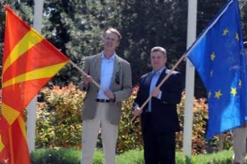 Претседателот на Македонија Ѓорге Иванов и шефот на делегацијата на Европската унија во Македонија, Аиво Орав, денес ќе извршат традиционална церемонијална размена на знамињата на Македонија и на Европската унија, јавува „Сител“.