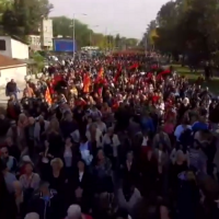 Пеејќи македонски песни и веејќи државни знамиња, народот се упатува на собирот каде свое обраќање ќе има лидерот на ВМРО-ДПМНЕ, Никола Груевски.
