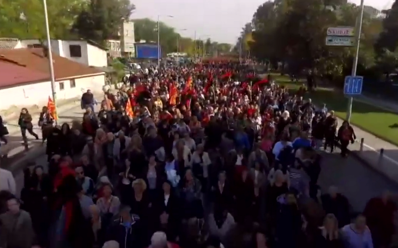 Од неколку страни на Скопје, масовно сплотени, македонските граѓани пристигнуваат пред спортскиот центар.