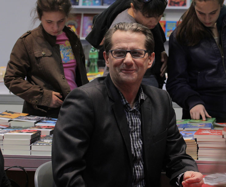 На Саемот на книга тој секој ден беше на штандот на „Три“ и потпишуваше примероци, а сега низ гимназиите во Македонија ќе го претстави своето најново дело на најмладата популација, на која ѝ советуваше да ги остави компјутерите, „Фејсбук“, „Твитер“…и да излезат во природа, да возат ролерки, да свират гитара, да се дружат и да се вљубуваат.