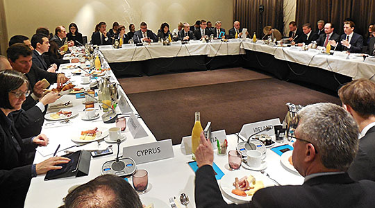 Министрите за надворешни работи на земјите-членки на Европската унија, денеска во Брисел, заедно со еврокомесарот за преговори за проширување Јоханес Хан, организираа работен појадок со шефот на македонската дипломатија Никола Попоски, на кого му ги пренесоа импресиите од успешното организирање и спроведување на фер избори во Македонија.