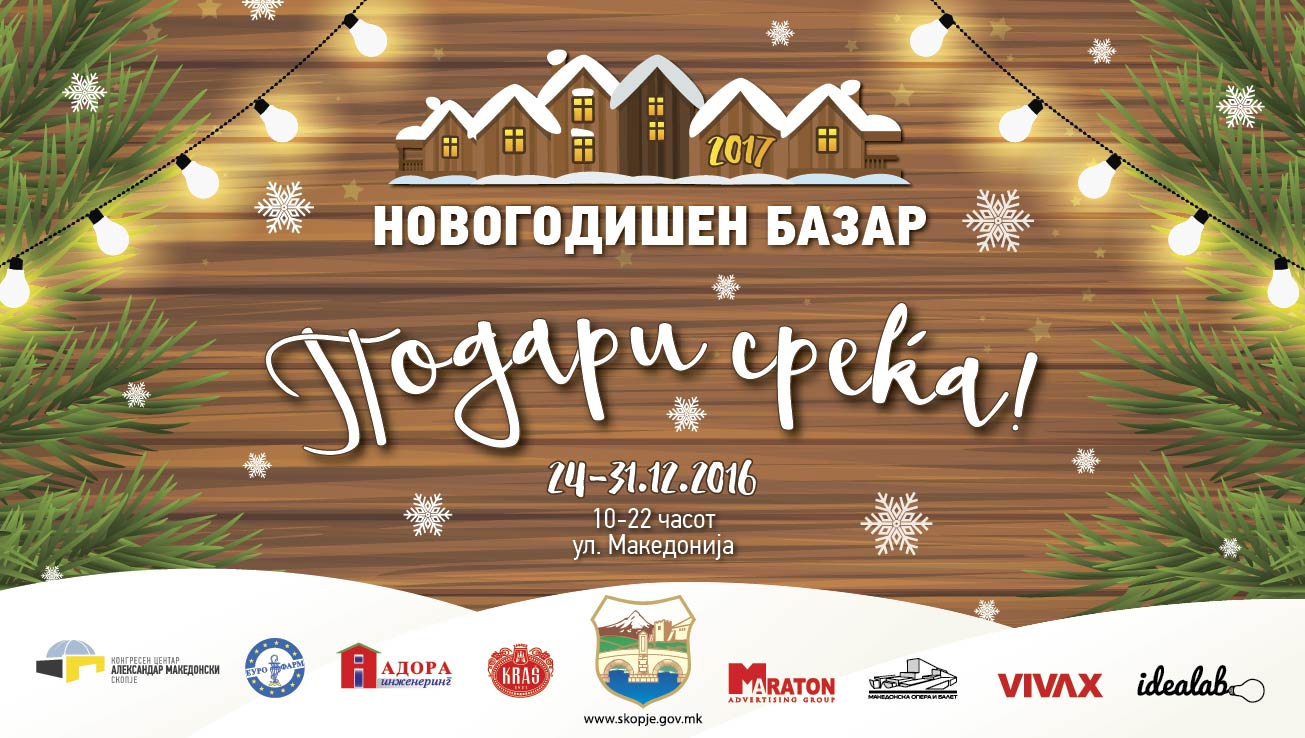 Божиќниот базар „Подари среќа” започнува во сабота на 24 декември, со почеток во 10:00 часот и трае се до 31 декември, а е под покровителство на Град Скопје и во организација на Конгресен центар „Александар Македонски“.
