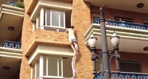 Додека брачна двојка во Сао Паоло, Бразил, жестоко се расправа на тераса пред очите на десетици минувачи, љубовникот на жената ја искористи шансата и се обиде да избега низ прозор.
