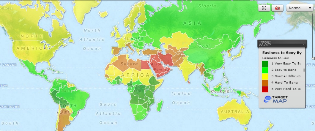 Мапата која што ја изработил еден „секс турист“ кој го прошетал цел свет, покажува во кои земји девојките можете лесно да ги легнете, а кои се (по)тешки на тоа поле, Македонките се сместени во третата група, на средина, односно во групата на нормални девојки.