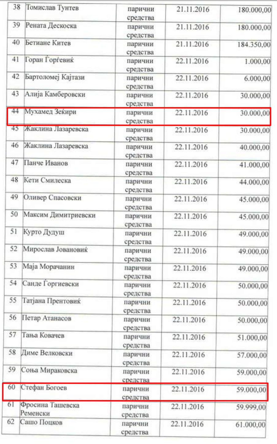 Мухамед Зекири, кој беше вработен во СДСМ со плата од 30.000 денари за да не остане без пари на улица, на 22 ноември донирал 30.000 денари, на 23-ти 50.000 и на 25-ти уште 50.000 денари. Значи во пет дена донирал 130.000 денари или 4 свои плати.